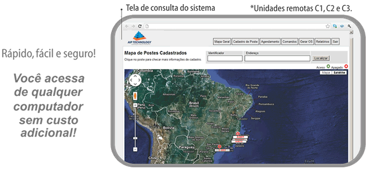 Terminais de monitoramento, via Web, para acesso ao software de comando e controle das unidades remotas